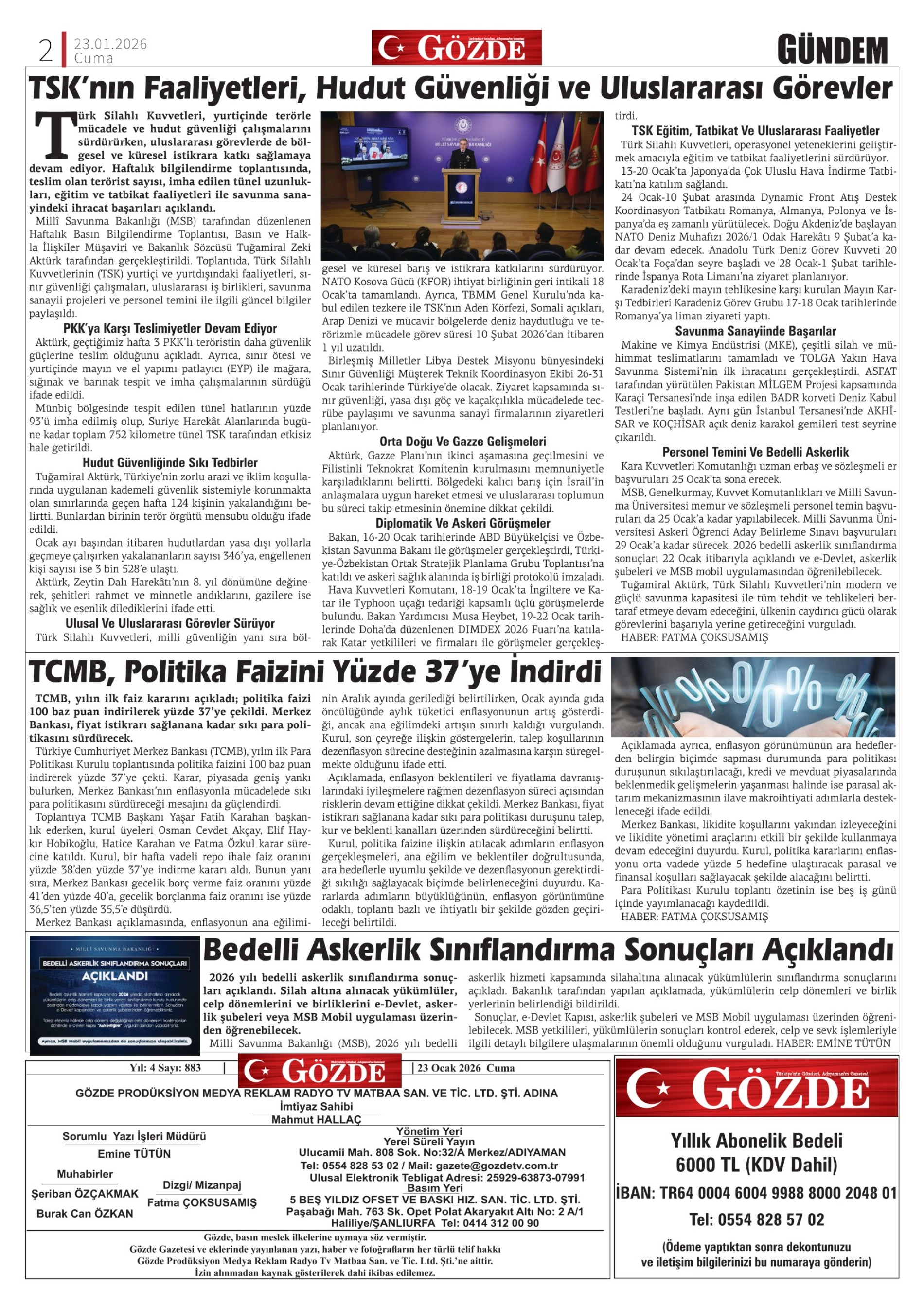 23 OCAK 2026/883 Sayı