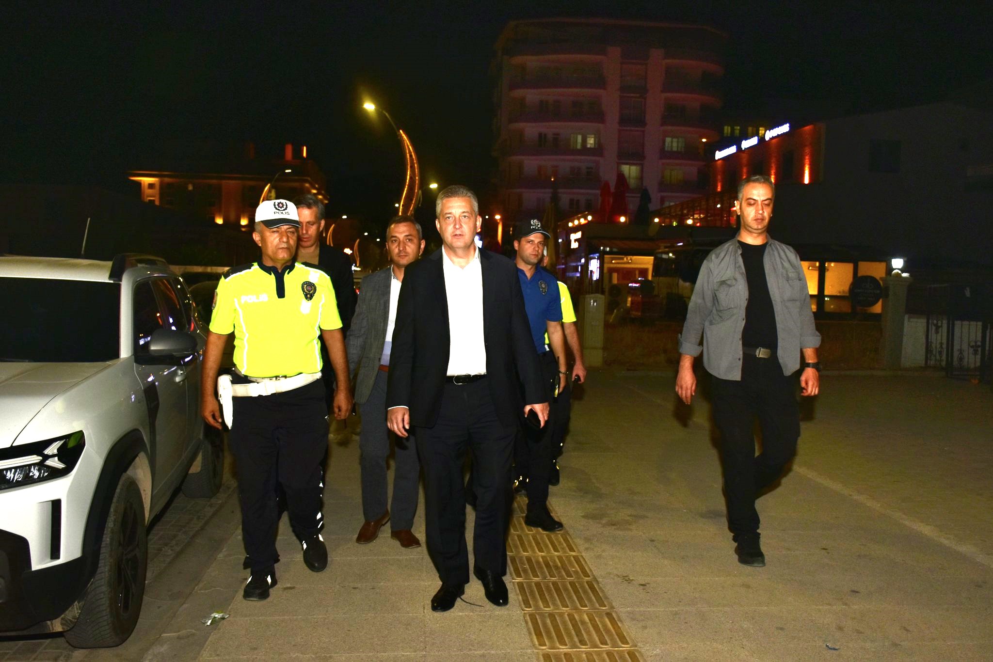 Ziyaret kapsamında cadde üzerinde görev yapan ekipleri ile Çarşı ve Mahalle Bekçilerini de denetleyen Emniyet Müdürü Nazman, sahadaki çalışmaları yerinde inceledi.