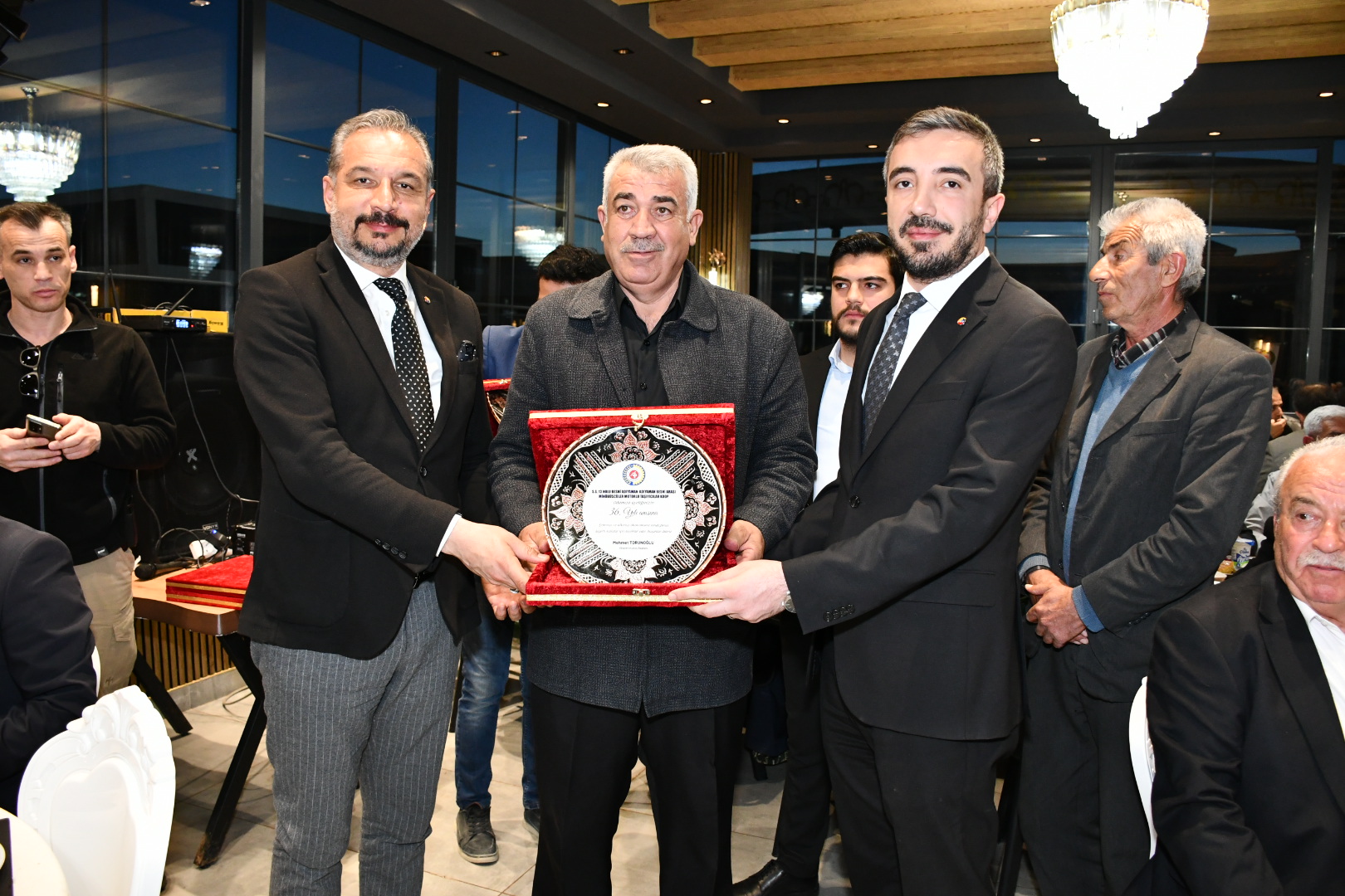 İftar programı sonrası Besni Kaymakamı Dr. Ahmet Oğuz Aslan, Tut Belediye Başkanı Ercan Öncebe, ATSO Başkanı Mehmet Torunoğlu ve Meclis Başkanı Abdulgani Bereket, Odamıza üyeliklerinin 35. ve 41. yılı anısına üyelerimize plaket takdim etti.
