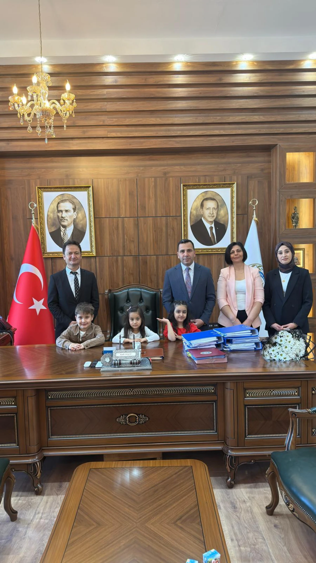Adıyaman’ın Gölbaşı ilçesinde 23 Nisan Ulusal Egemenlik ve Çocuk Bayramı kapsamında Kaymakamlık makamı, temsili olarak Salkım Anaokulu öğrencilerine devredildi. Minik öğrenciler, kaymakamlık koltuğuna oturarak hayal ettikleri projeleri paylaştı ve bayramın sevincini makamda yaşadı.
