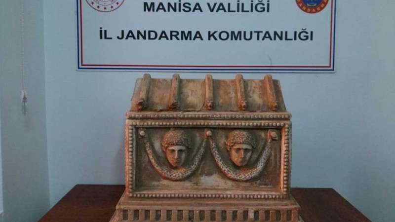 Manisa'nın Şehzadeler ilçesinde S.D. isimli şüpheli kaçak kazıyla çıkardığı Roma dönemine ait lahidi 5 milyon TL'ye Ankara'dan gelen alıcılara satmak istedi. Alınan istihbaratı değerlendiren Manisa İl Jandarma Komutanlığına bağlı ekipler, S.D.'yi gözaltına aldı.