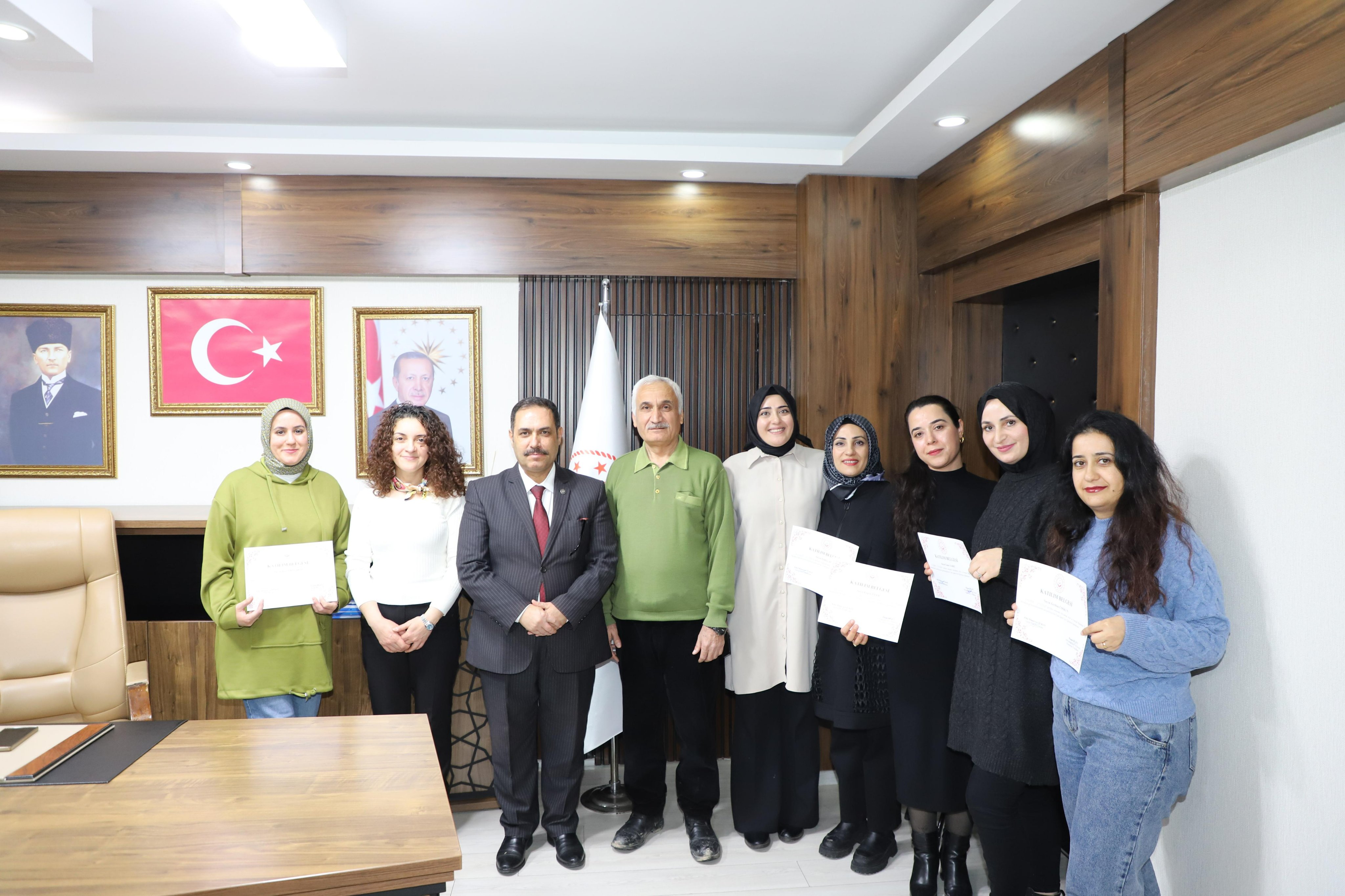 Müdürlük bünyesinde görev yapan Kadın Konukevi Müdürü ve kuruluş personeline yönelik düzenlenen Türk İşaret Dili Eğitimi ise başarıyla tamamlandı. Eğitimin ardından katılımcılara belgeleri takdim edilirken, gösterdikleri ilgi ve duyarlılık için teşekkür edildi.
