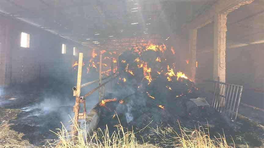 Adıyaman'da 50 kamyon saman balyası yandı