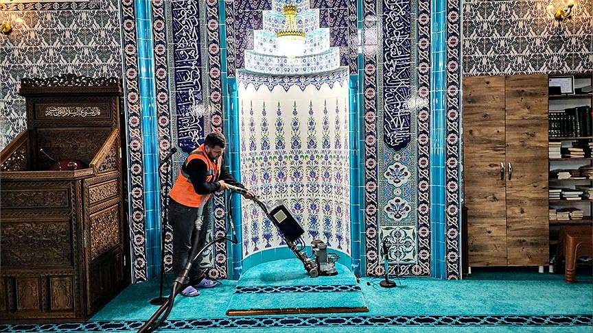 Adıyaman’da cami, cemevi ve türbelerde temizlik ekipleri bayram temizliğini yaptı.