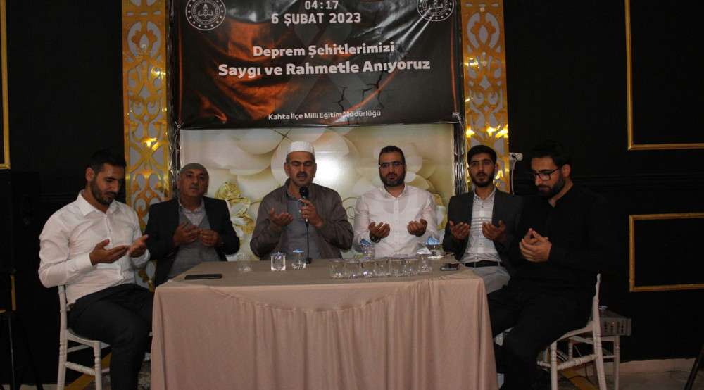 Adıyaman’ın Kahta İlçe Milli Eğitim Müdürlüğü tarafından 6 Şubat 2023’te meydana gelen depremlerde şehit olan öğretmenler için mevlit okutuldu.