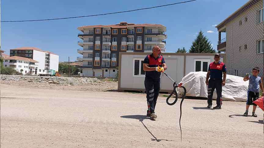 Adıyaman'ın Gölbaşı ilçesinde evin bahçesine giren yılan itfaiye ekipleri tarafından yakalandı.