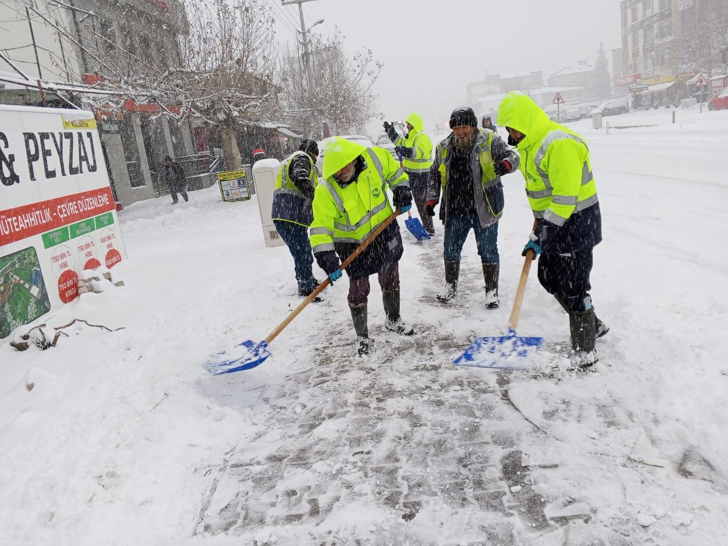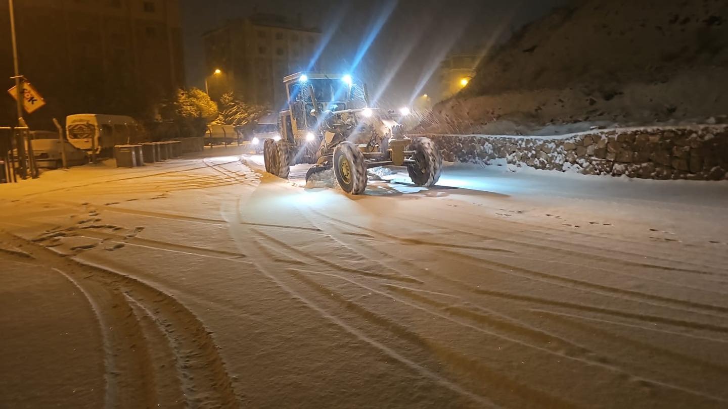 Sabah saatlerinden itibaren kar yağışı nedeniyle tüm ekipler sahada çalışmalarını sürdürüyor.