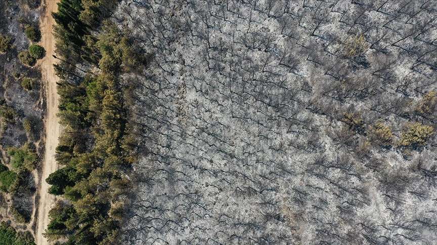 Oğlananası Mahallesi'ndeki orman yangını ardında bölgede siyah bir görüntü bıraktı.