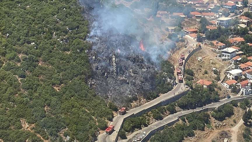 Yerleşim birimlerine yakın konumda ve sarp arazideki yangının söndürülmesi için İzmir Orman Bölge Müdürlüğüne bağlı 2 uçak, 4 helikopter, 13 arazöz, 3 su ikmal aracı ve 2 dozerin yanı sıra İzmir Büyükşehir Belediyesi itfaiye ekipleri ve TOMA araçlarıyla çalışma başlatıldı.