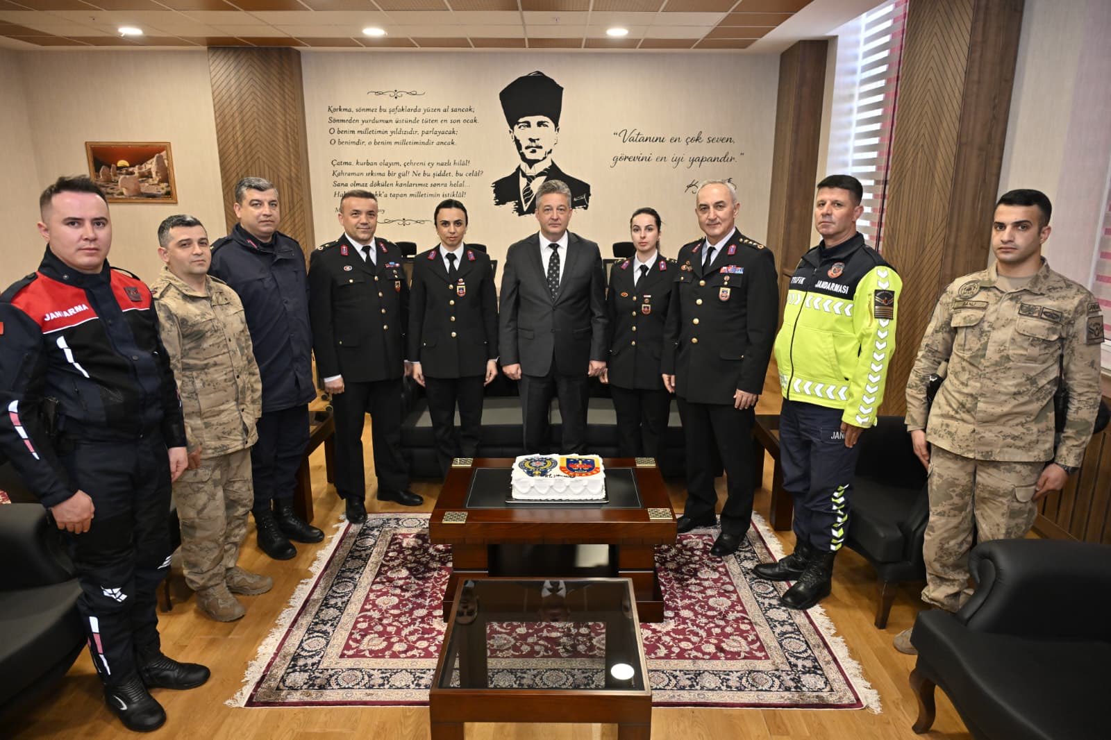 Yapılan açıklamaya göre, İl Jandarma Komutanı Fahri Semiz ve beraberindeki heyet, İl Emniyet Müdürü Arzum Nazman’ı makamında ziyaret ederek Emniyet Teşkilatı’nın kuruluş yıl dönümünü kutladı.
