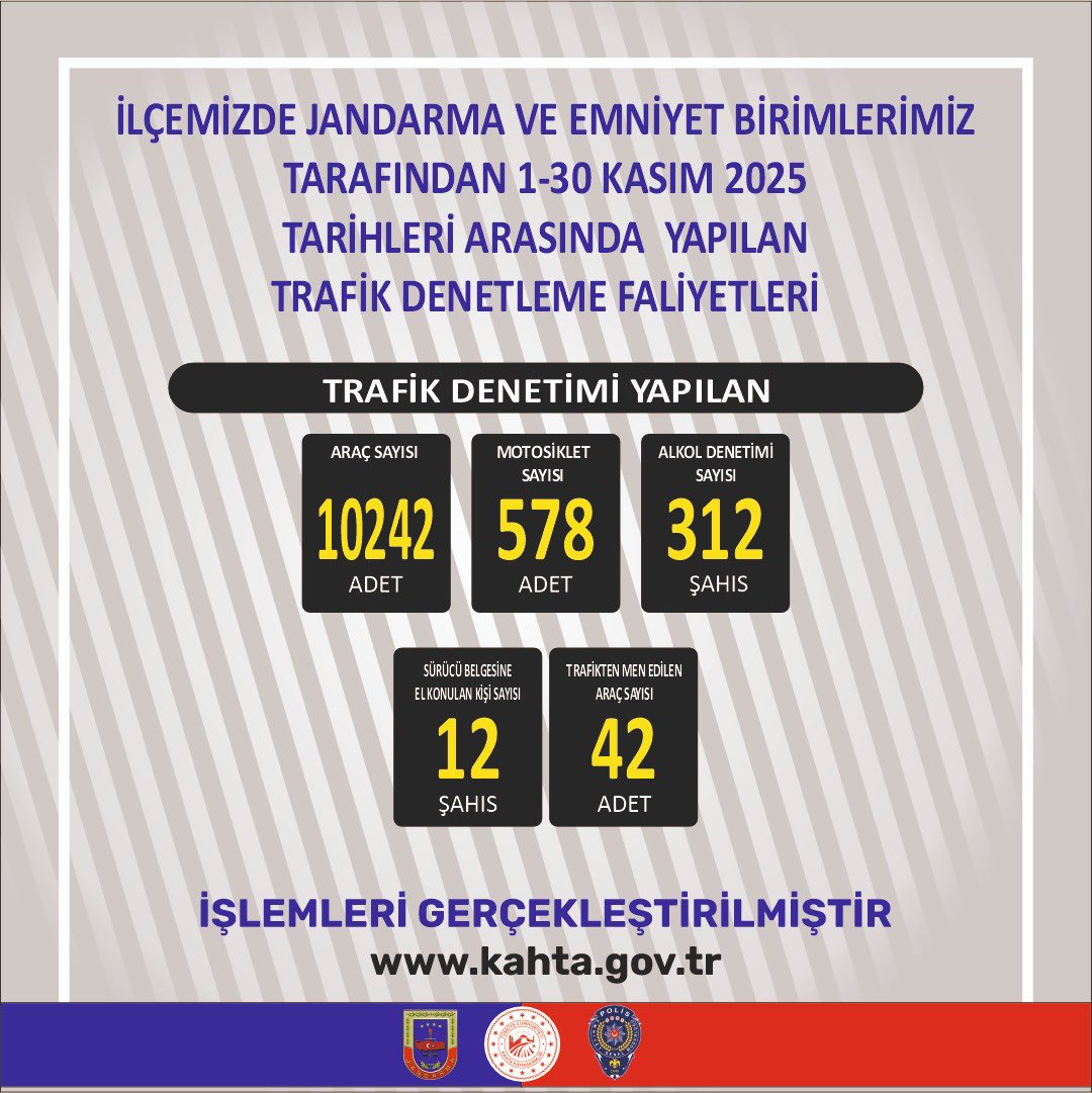 Kahta’da trafik güvenliğini sağlamak amacıyla da Kasım ayında kapsamlı denetimler gerçekleştirildi. 10.242 araç ve 578 motosiklet üzerinde denetim yapıldı. Alkol denetimleri sonucunda 312 şahıs kontrol edilirken, 12 sürücünün ehliyetine el konuldu ve 42 araç trafikten men edildi.