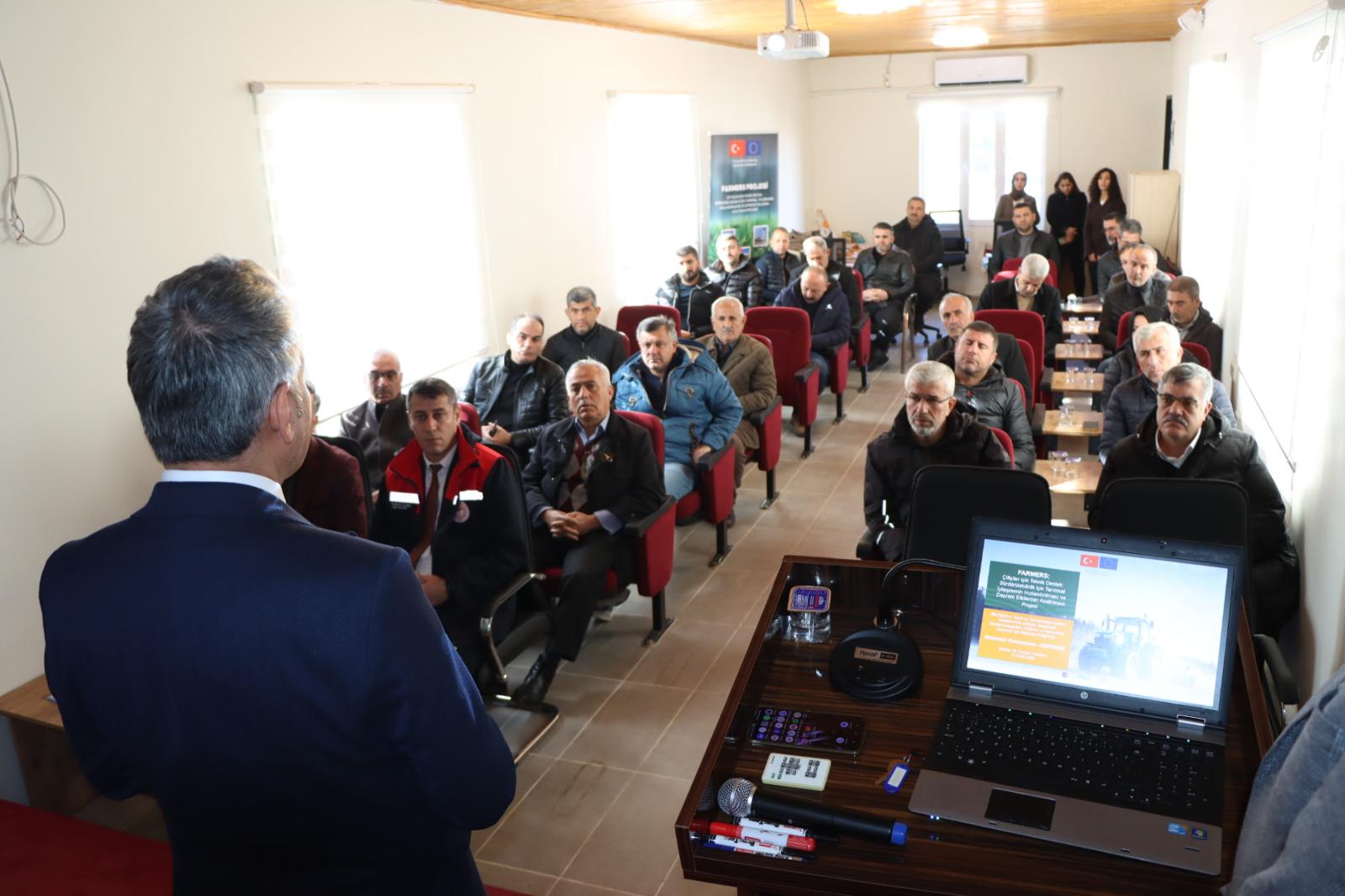 Tarım ve Orman Bakanlığı IPA Birimi tarafından hazırlanan, Avrupa Birliği tarafından finanse edilen ve Almanya Uluslararası İşbirliği Kurumu (GIZ) tarafından yürütülen "Çiftçiler İçin Teknik Destek: Sürdürülebilirlik İçin Tarımsal İyileşmenin Hızlandırılması ve Deprem Etkilerinin Azaltılması (FARMERS)" Projesi kapsamında, Kahta Tarım ve Orman İlçe Müdürlüğü toplantı salonunda üreticilere yönelik bir eğitim toplantısı düzenlendi.
