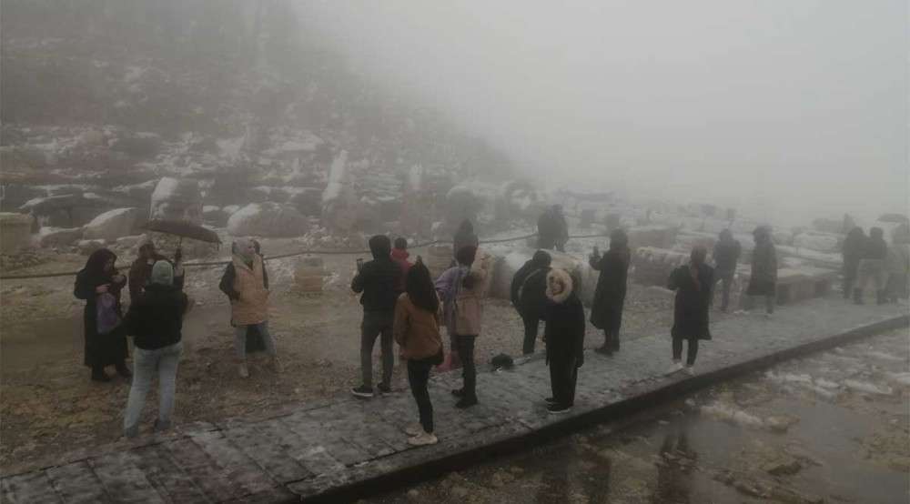 Nemrut’ta turistlere kar sürprizi