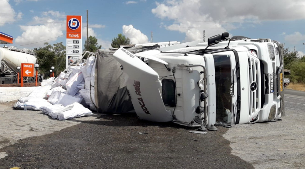 Kaza, gece geç saatte Adıyaman Gölbaşı karayolu Börgenek rampasındaki virajda meydana geldi. Enis Büyükaksoy yönetimindeki 42 SB 615 plakalı çuval yüklü tır Adıyaman istikametinden Gölbaşı yönüne giderken virajı alamayarak yan yattı.